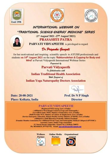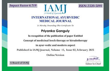 Dr. Priyanka Ganguly's HOLISTIC HEALTH CONSULTANCY dedicates to promoting beauty & sound health through holistic approaches under one umbrella which offers a diverse array of treatments rooted in Ayurveda, Panchakarma, Naturopathy, Physiotherapy, Yoga, Acupuncture, Cupping, Leech therapy , Agnikarma and Advanced Non-Surgical Cosmetology.